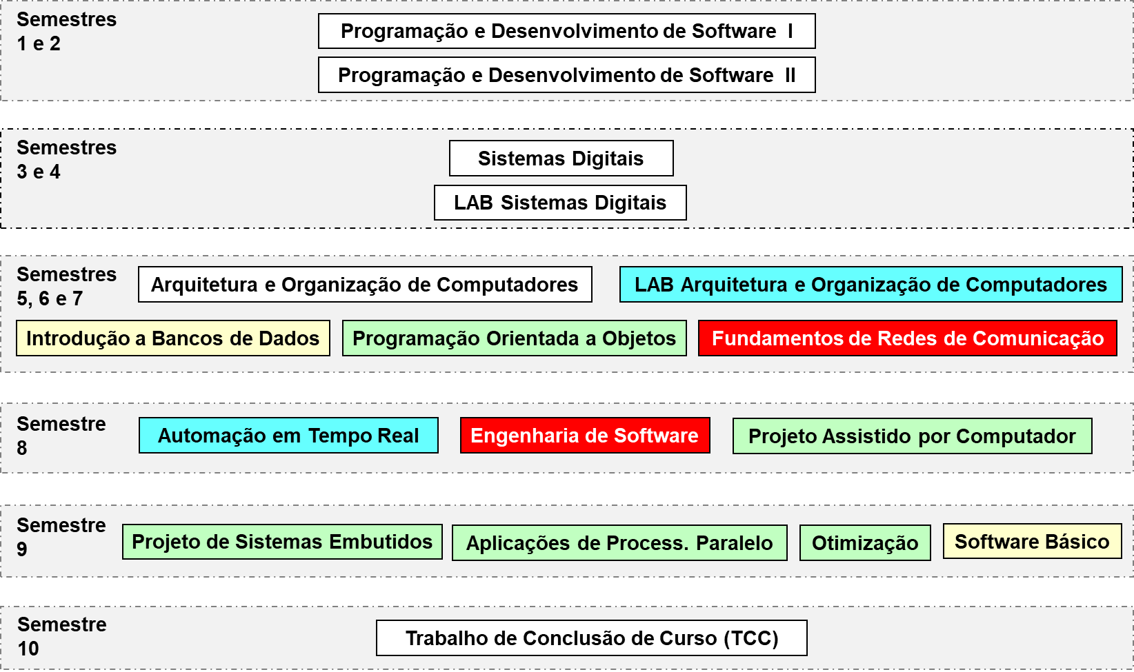 As disciplinas indicadas abaixo também possuem aderência ao cenário de Desenvolvimento de Ferramentas de Software, em especial a de Estruturas de dados por razões óbvias. Quadro de disciplinas mais recentes recomendadas